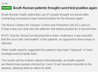 South Korea “recovered” case reinfected