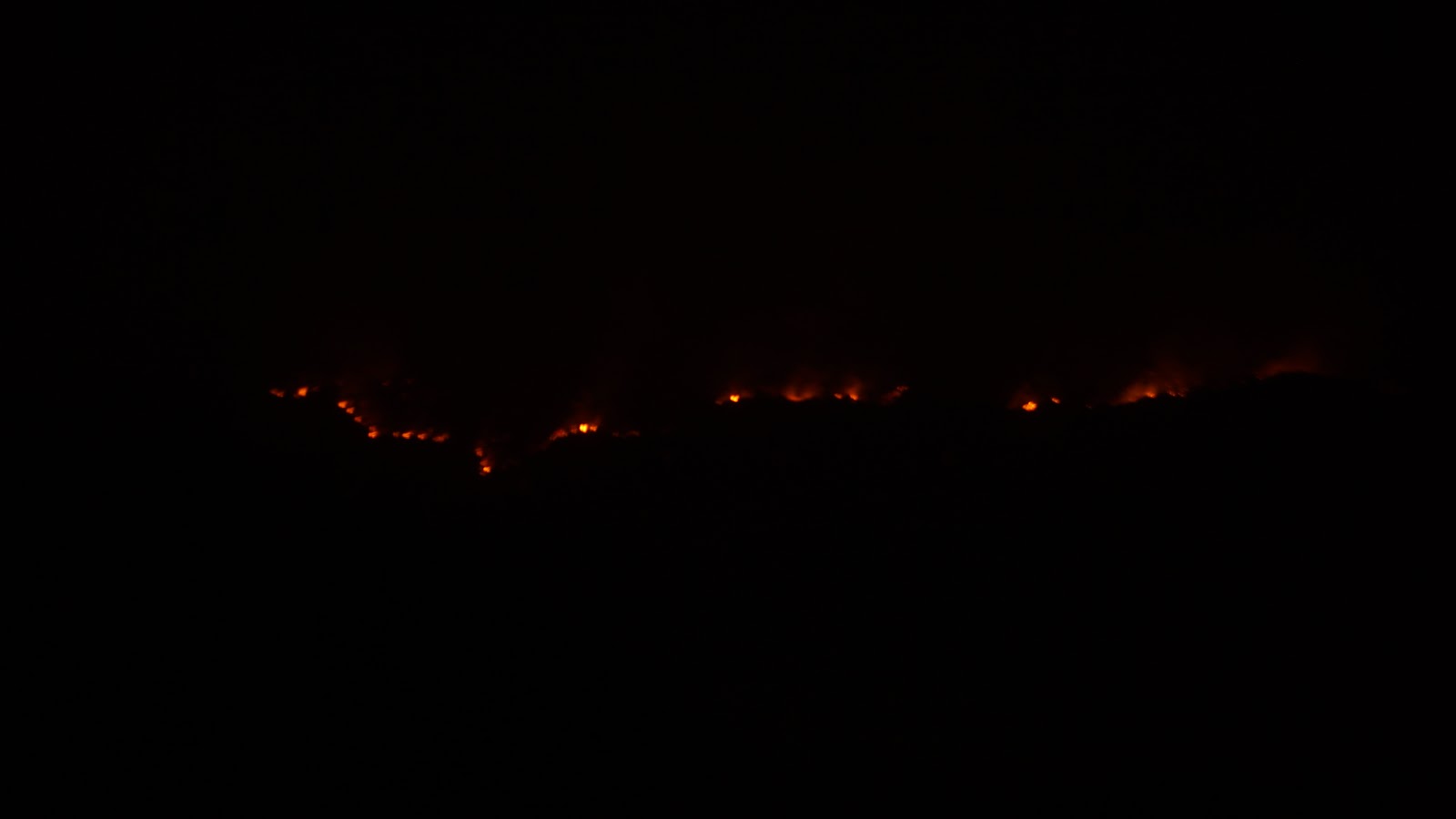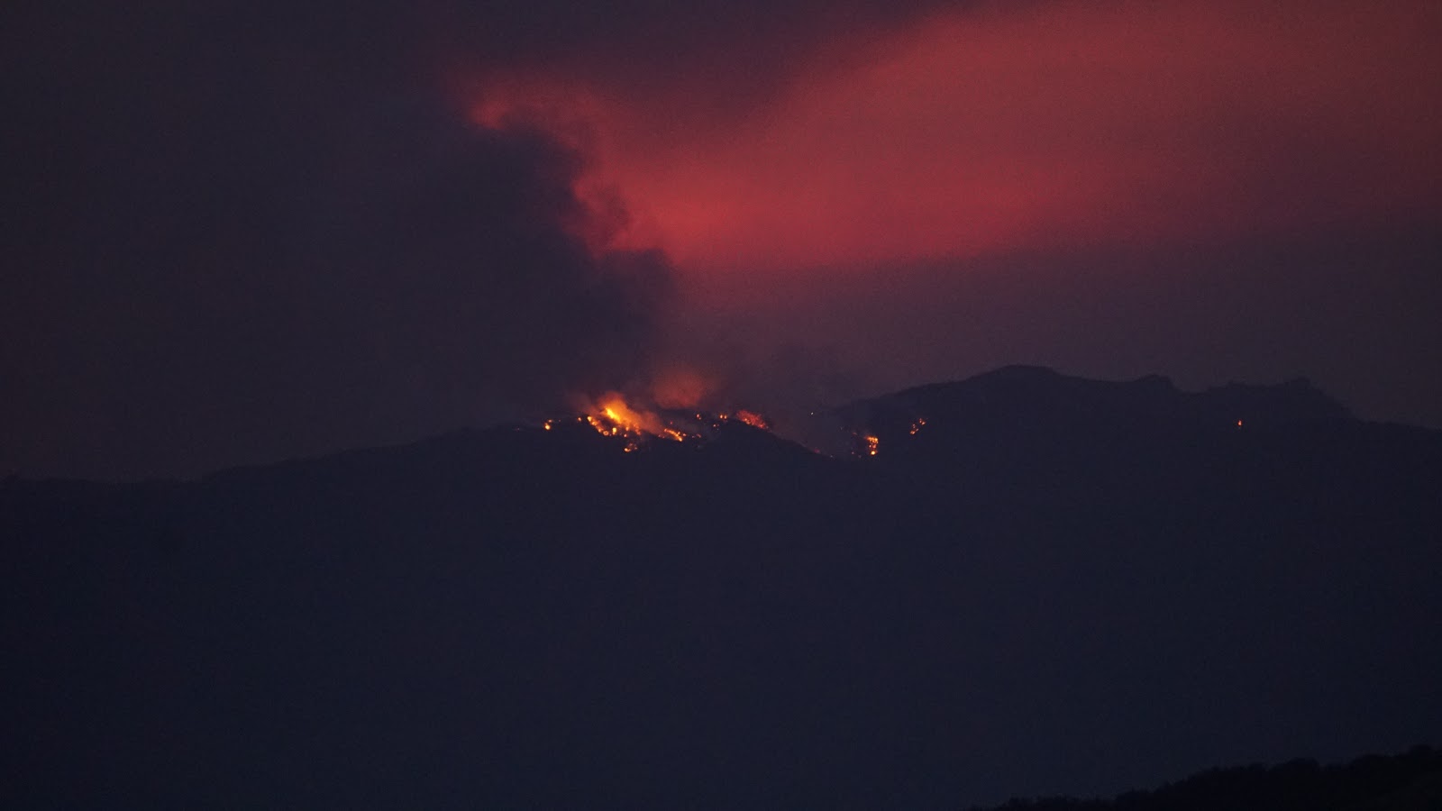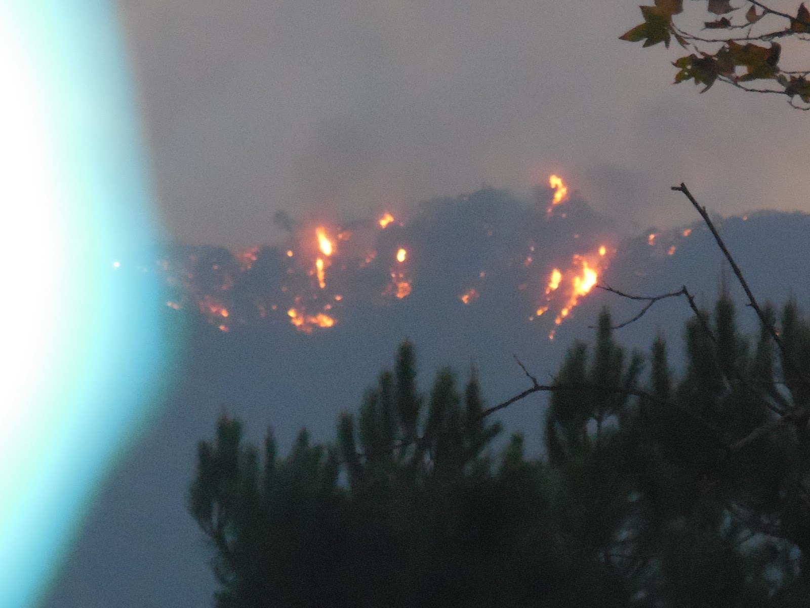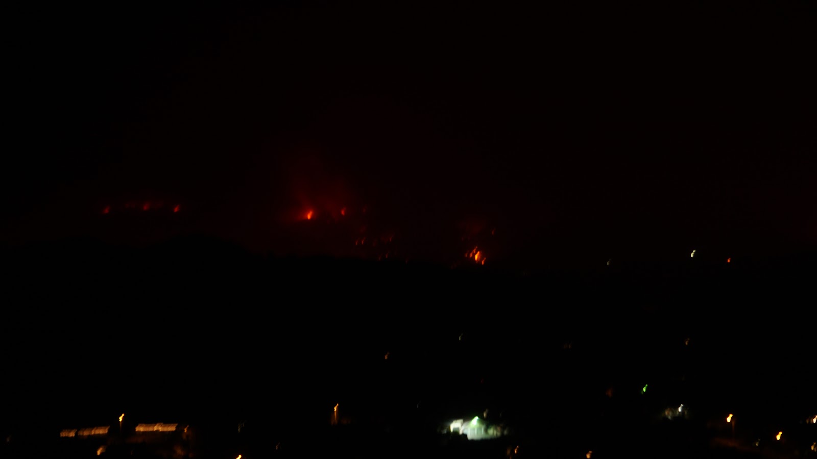 A wall of fire tonight 12 miles long, heading our way. Sorry for the shaky picture, shot it freehand in dense smoke. |