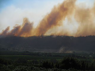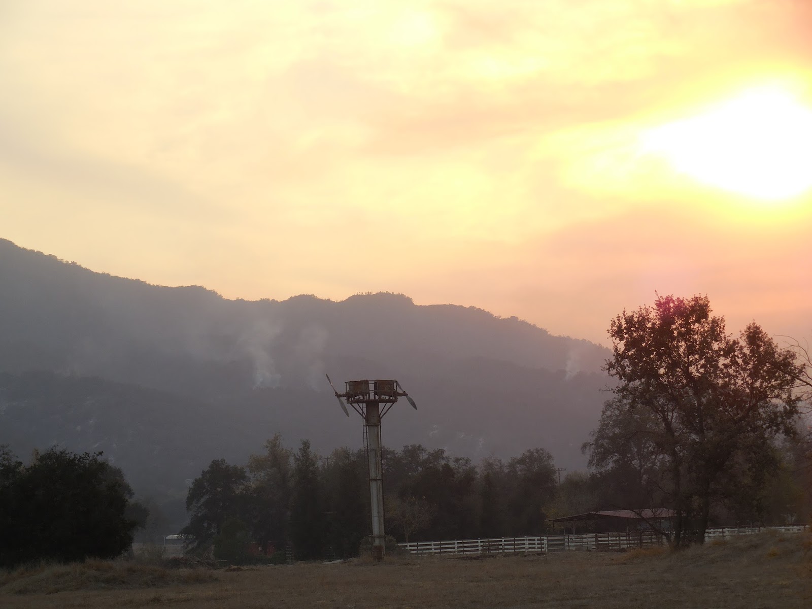 Though this be over, fire wise we hope, the chocking smoke and falling ash is terrible. Every morning is just thick smoke and ash covering everywhere. You can see it falling like snow.