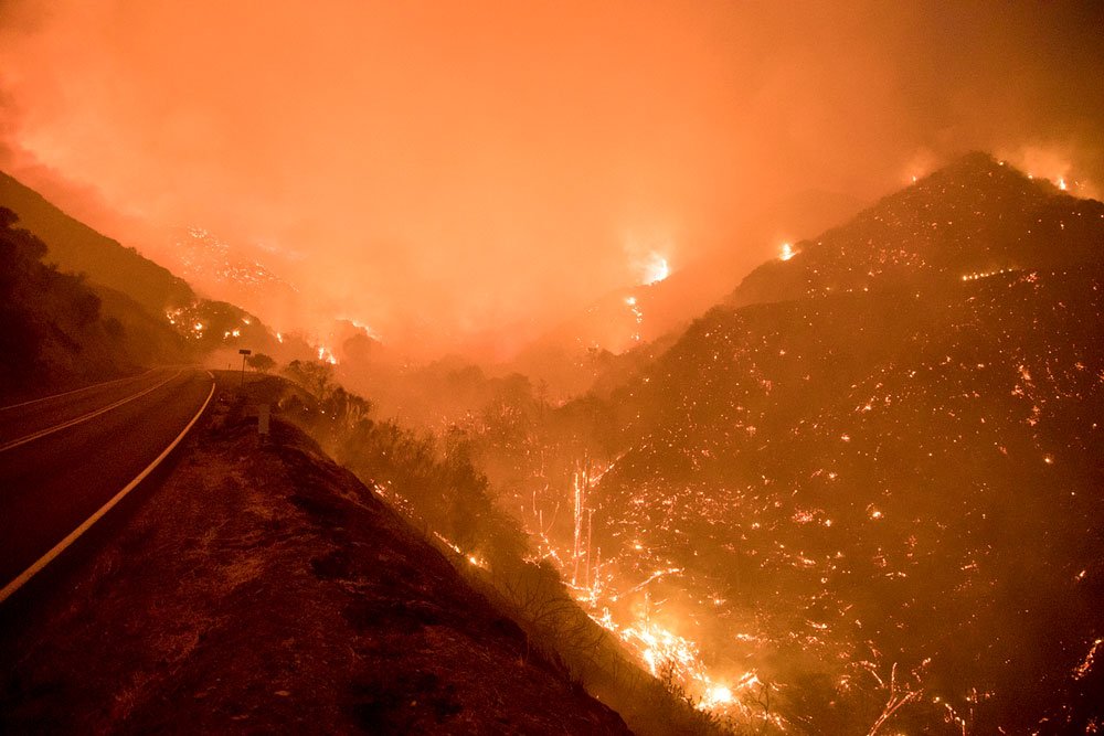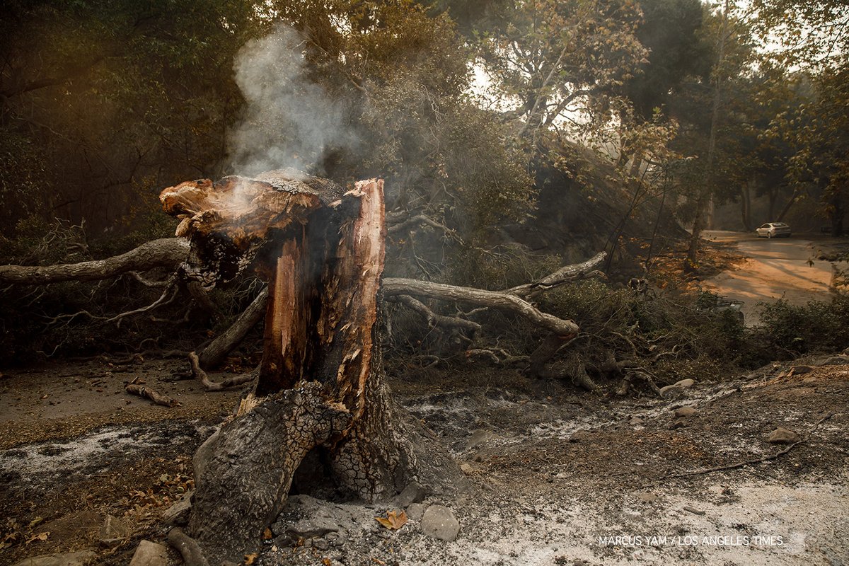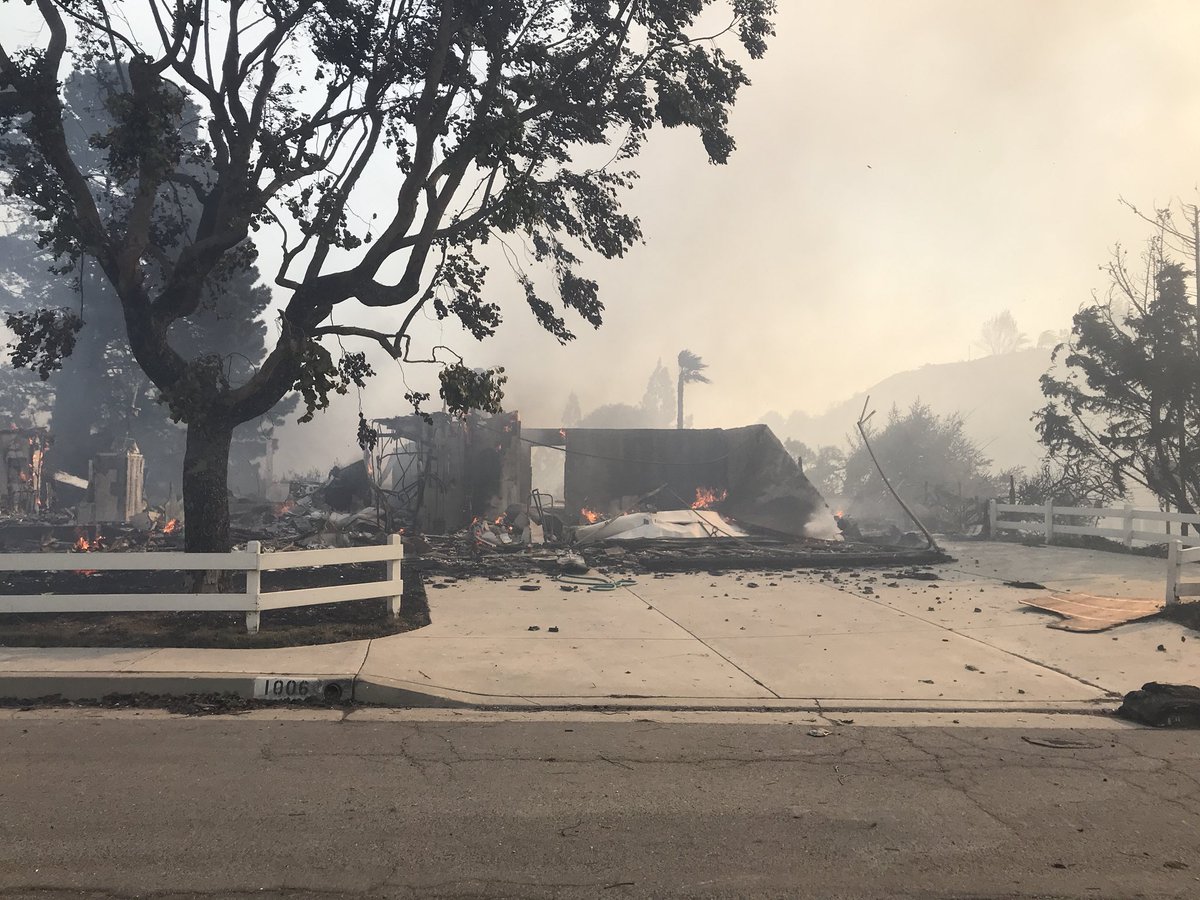 It’s really true, for Ventura and Santa Barbara counties, we have no more forests or countryside, or orchards, or farms. Sure, there are some abouts – oases in the midst of grey ash – but our beautiful canyons, trails, peaks, ridges, undulating hills, and lovely drives we are famous for and which draw thousands of weekend get-away types and bikers…that’s all gone. Along with the homes. And the people. I’ve driven through some of the most beautiful sections of Southern California and it looks like Hiroshima after the Bomb was dropped. I’ve put some of those pics up. And, it’s still going on. Just today – today, 11 days into this nightmare – from Ojai Valley Ave, I could and did see 7 different new fires startup in areas that were completely burned out last week, save for those miracle parts that got skipped over from the flames. And sure enough, here comes round two, to take them away, lest someone say, I survived and kept my land, my well, and my house out of the city.