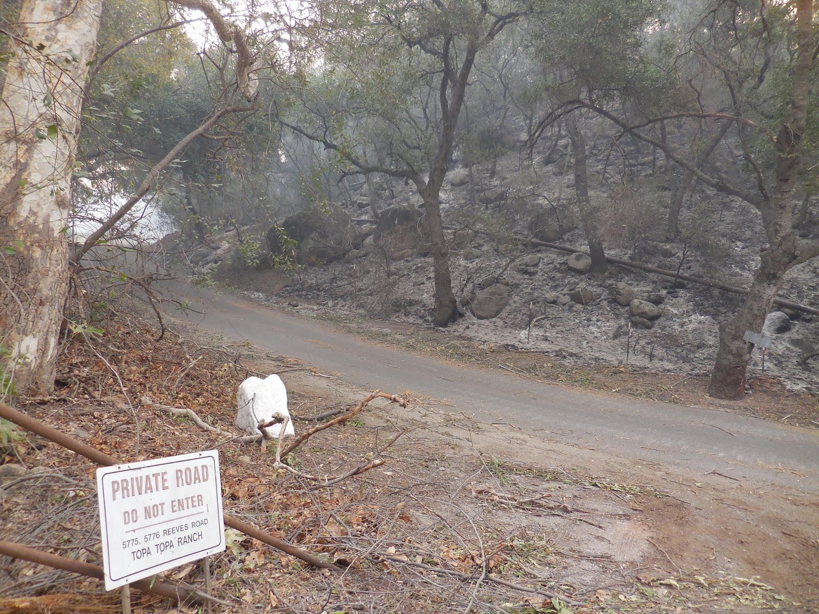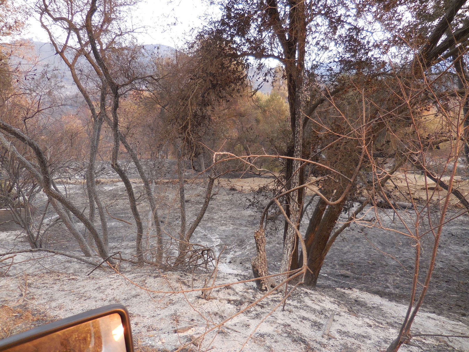 Pristine, and most beautiful creek road, now a wasteland. We watched them, as we live nearly on it, do nothing as the flames swept down the mountain and took out everything. No planes, no helos, no firetrucks. Just battalion commanders standing around. |