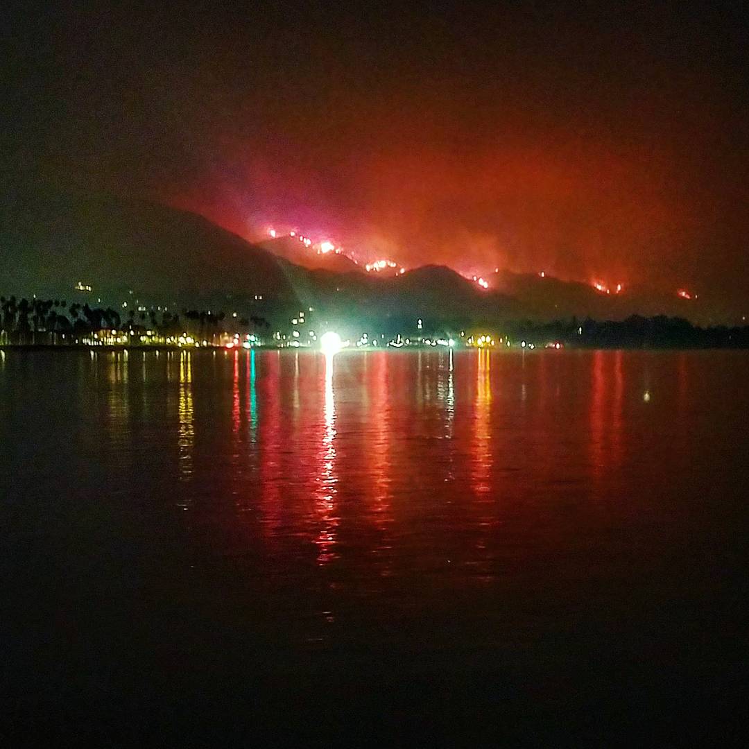 It’s Friday evening and the fires still burn. In carpenteria, Los Padres Forest, Fillmore, Lake Piru, Moorpark, ALL THE CHANNEL ISLANDS-HOW DID THAT HAPPEN, THEY ARE 20 MILES AWAY IN THE OCEAN? And on and on… The smoke has been so dense all day that visibility is about 100 feet in any direction. I’ve been wearing a bandanna to breathe, but…. I and we are most grateful for the spiritual and other support. Your kind words and thoughts are received happily. It’s like a boost that helps push through the long days. And this week has been a trying one. I’ve lived through many natural disasters, but this firestorm has beaten all the others I’ve dealt with. The one in January 2000, 2007 SCV, etc. The Northridge earthquake, and others.