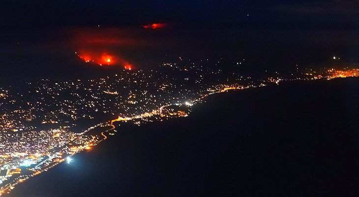 The orange circles are fire, yellow is past burns. It’s quite obvious paradise by the sea is having its day. |