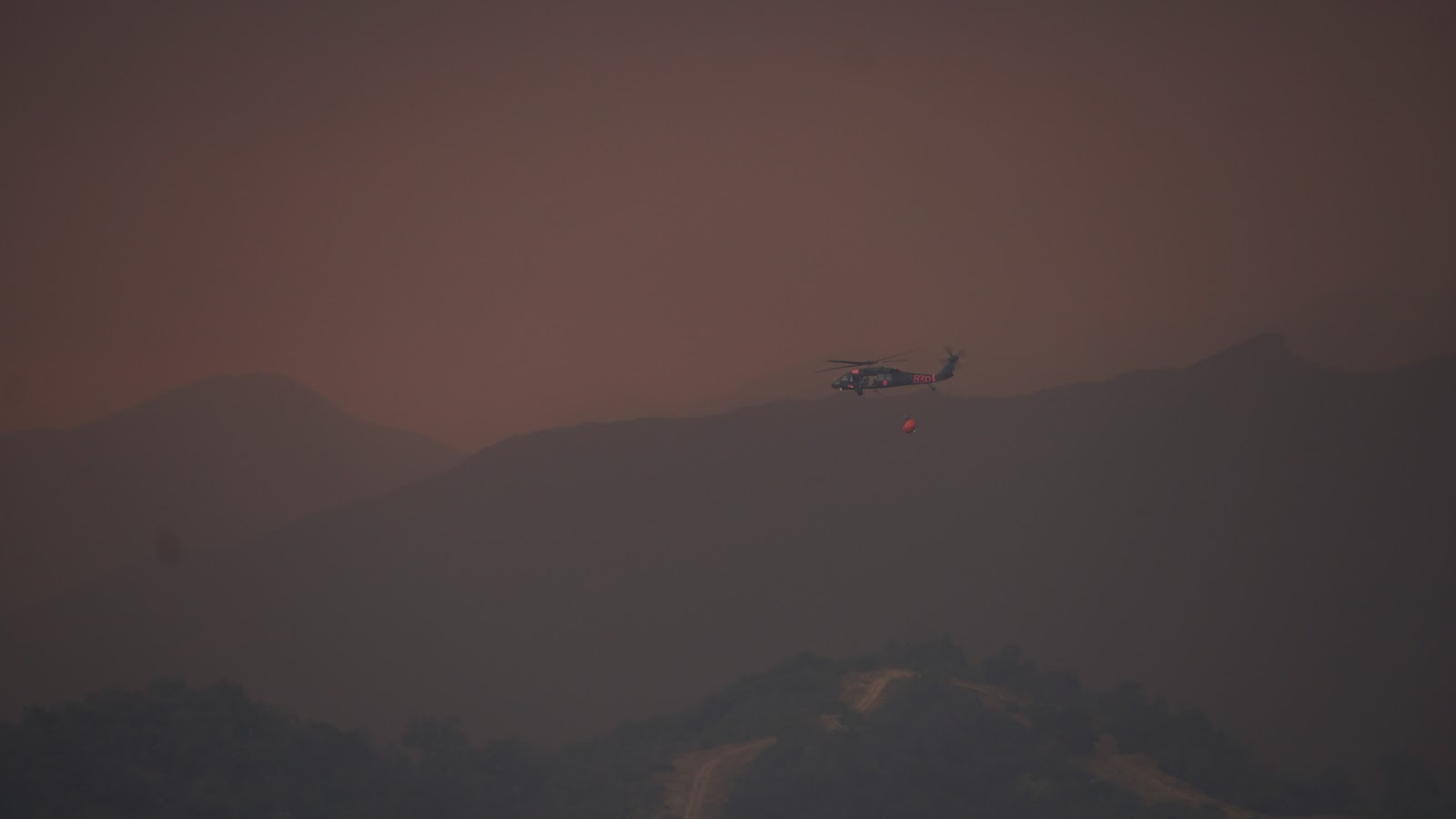 Fire already destroyed this Nordhoff range of mountains at this location, but on Thursday afternoon, right in front of me, a new burn exploded, right where buildings that survived the first time around, were standing. Wish I had a drone with Go Pro level camera on it, I’d use it. |