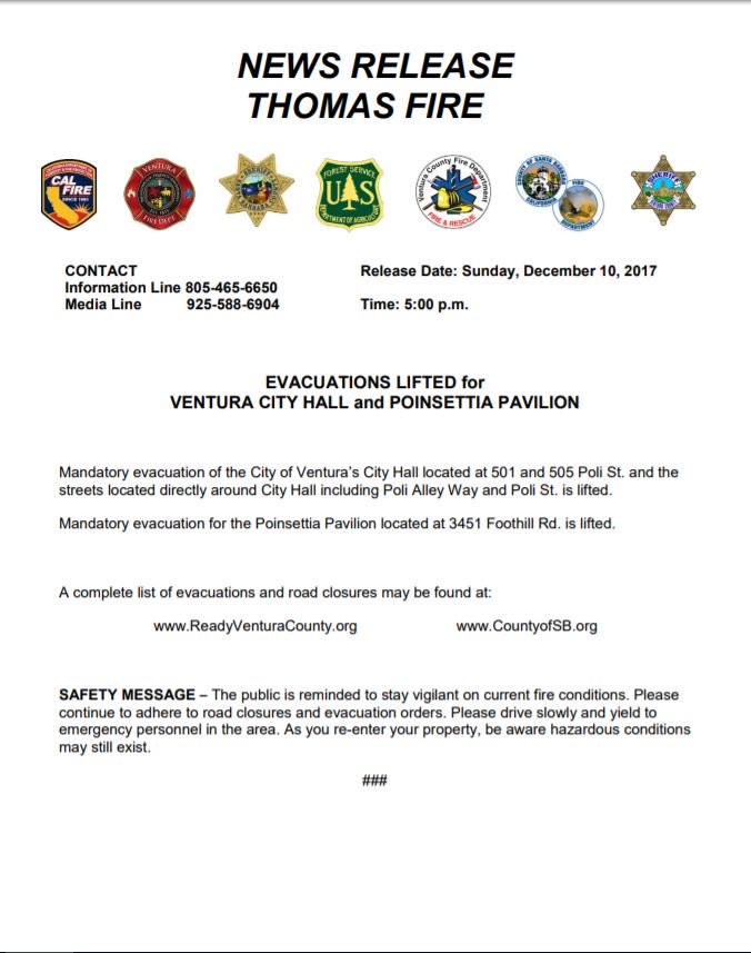 FIRE UPDATE 12-16-17