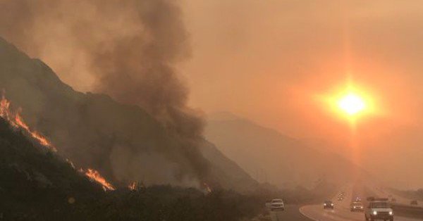 Fire coming down San Ysidro Cyn, taken from freeway at EVR and SYC |