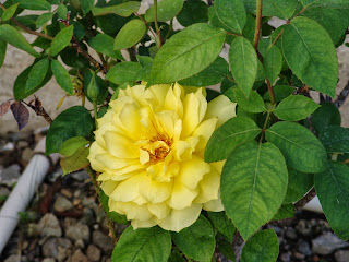 One month later, the roses are blooming and every garden needs some color about…for balance