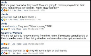 The county walked back Levin’s comments on Facebook, responding that they “are not going to remove anyone from their home,” but that “If someone cannot isolate at their home because of their living situation we have alternative options available.”